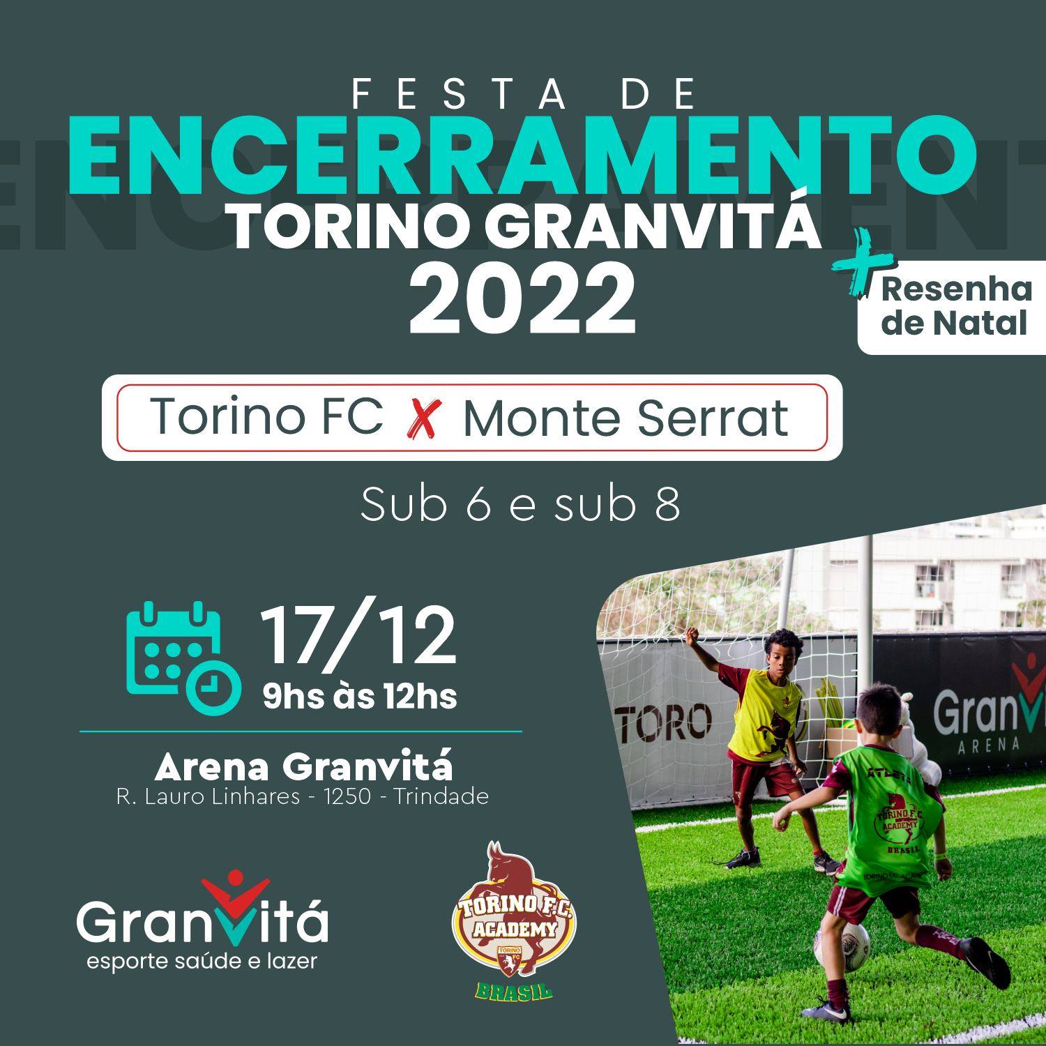 Dia 17 de novenembro acontecerá a festa de encerramento da Torino FC Academy Brasil Granvitá. O evento contará com uma partida entre o time da Torino e o da Monte Serrat, sub 6 e 8. Também teremos uma resenha de natal com a finalização do evento entregando brinquedos arrecadados para as crianças que participam desse projeto. Não fique de fora e venha com a gente nesse dia inesquecível, anota aí para não esquecer: